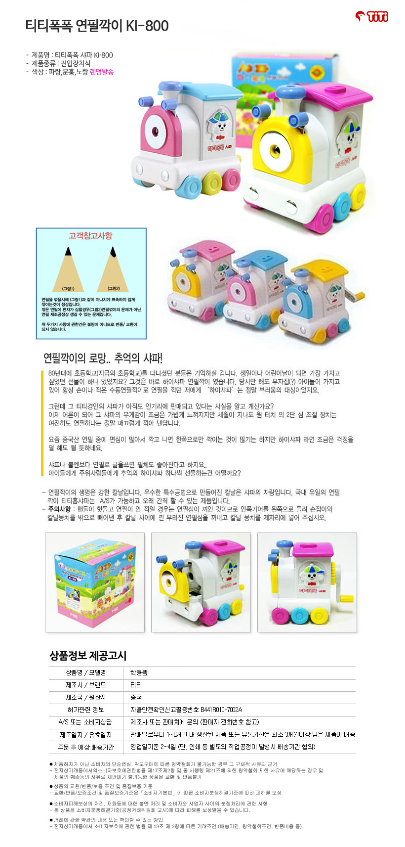티티폭폭샤파 KI-800 연필깎이