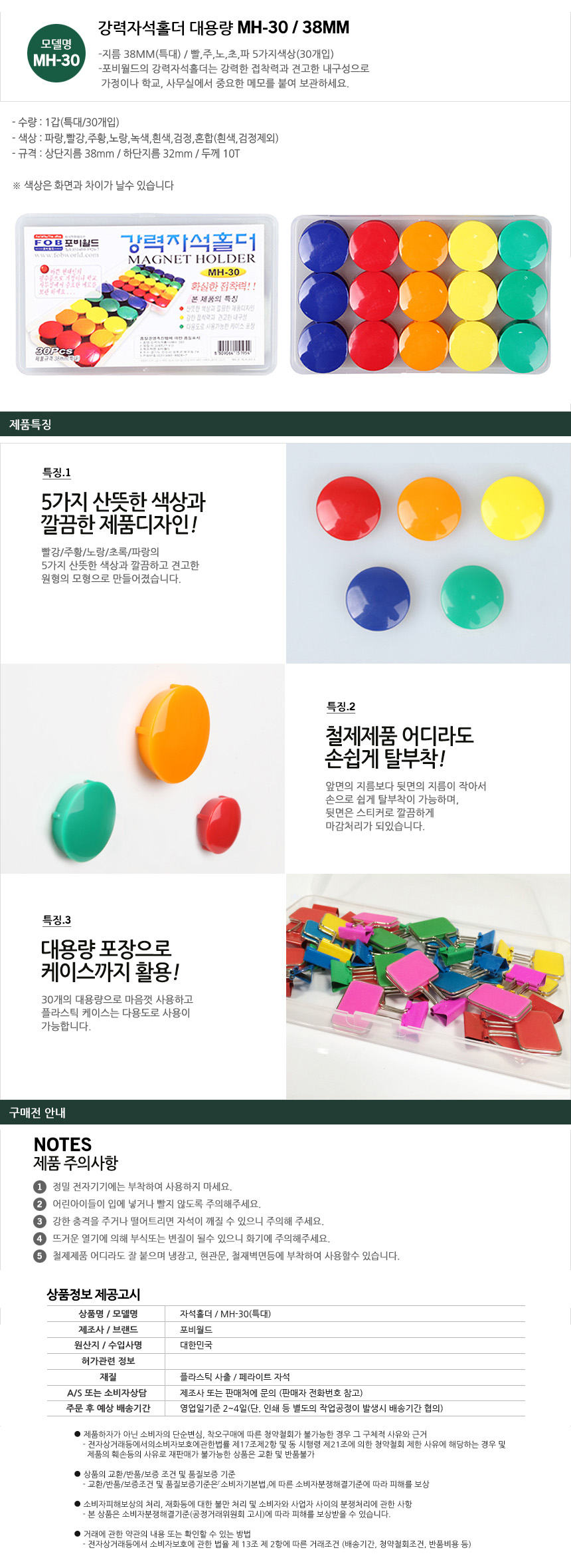 포비월드 강력자석홀더 MH-30(특대/38mm) 30개입