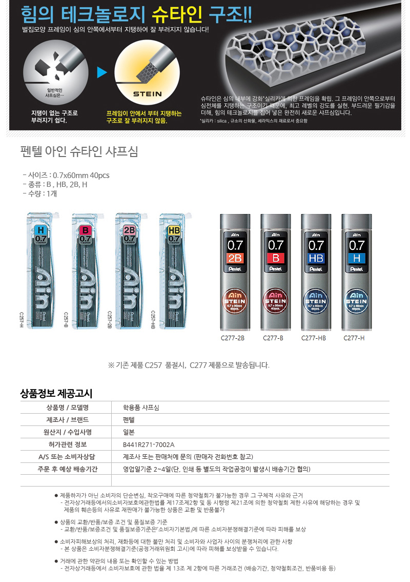 펜텔 아인슈타인 샤프심 C277 0.7mm