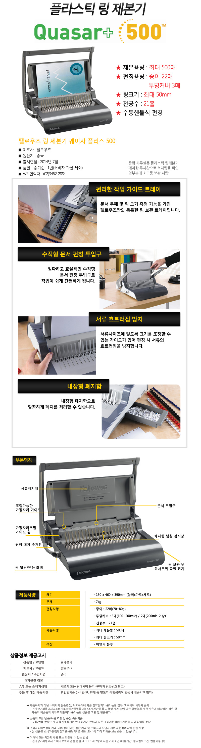 펠로우즈 링제본기 퀘이사플러스 500 56277