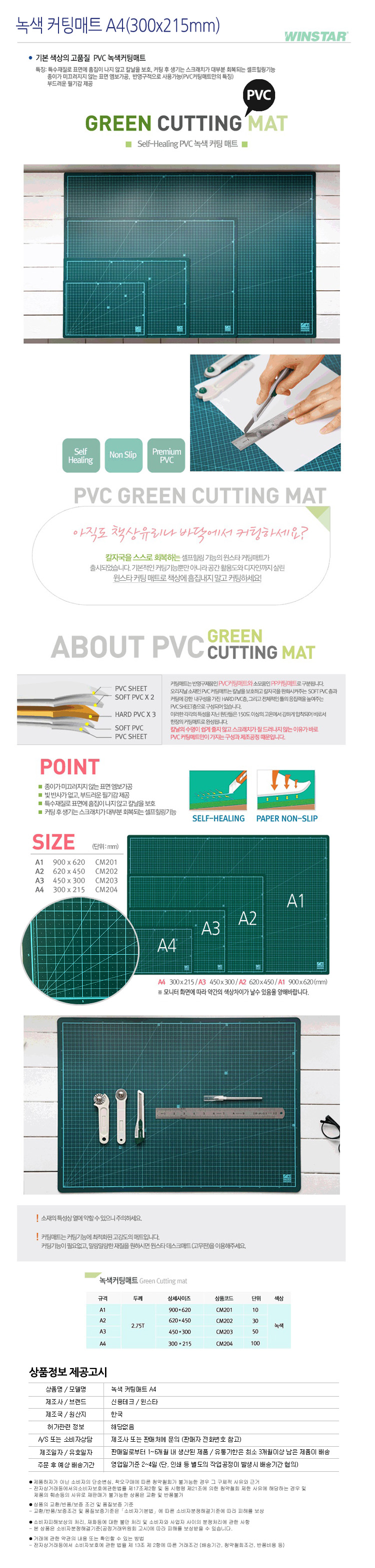윈스타 녹색커팅매트 A4(300x215) CM204
