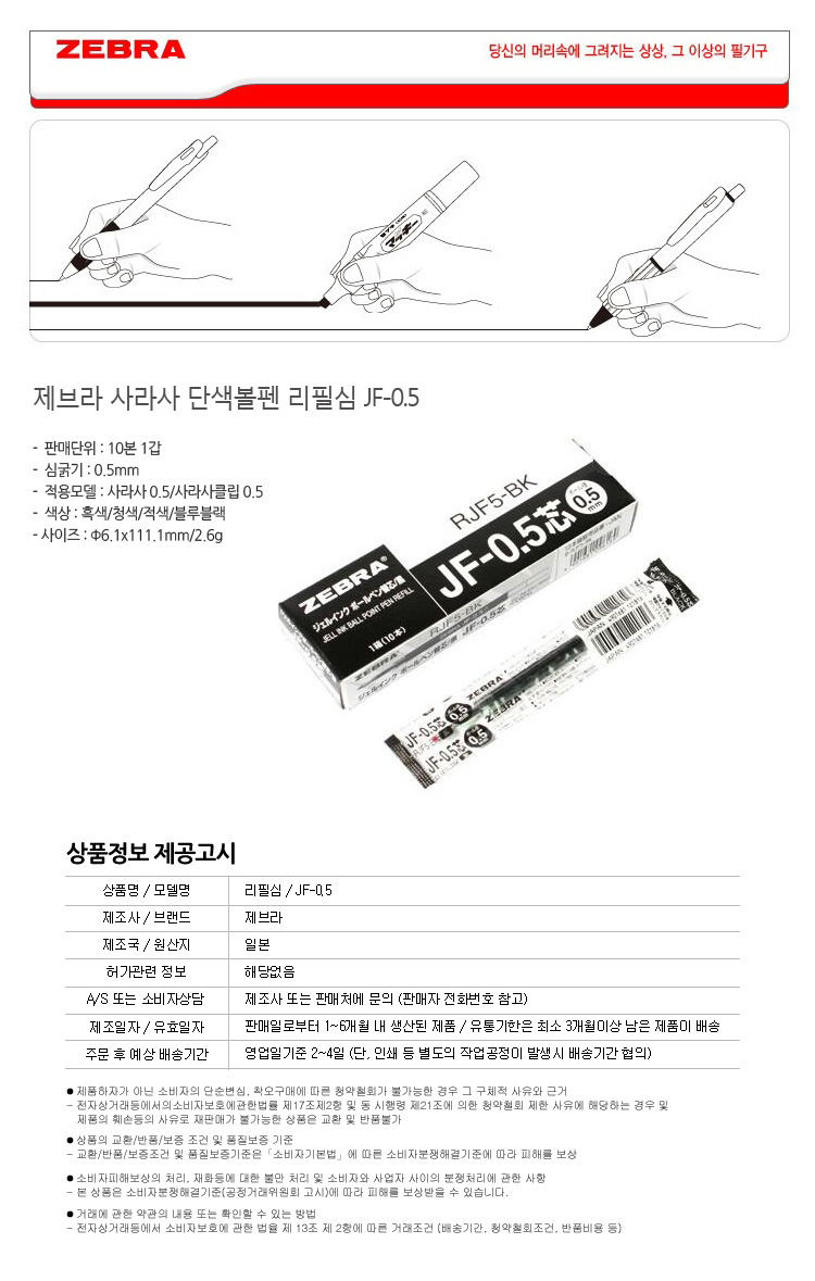 제브라 사라사 리필 JF-0.5 1타(10본)