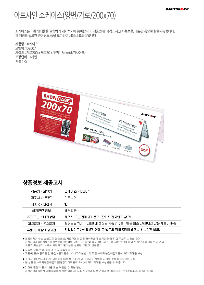 아트사인 쇼케이스 D2007(양면200x70)