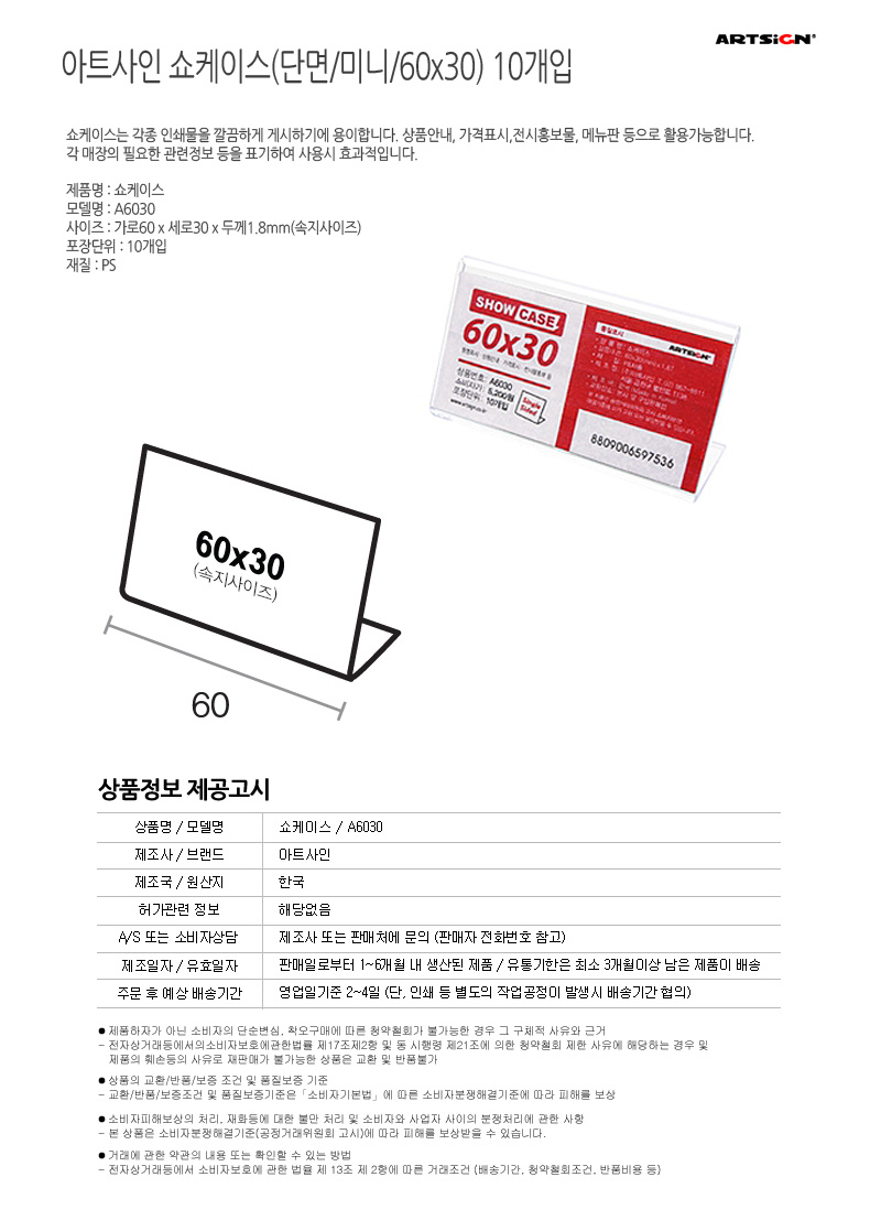 아트사인 쇼케이스 A6030(단면60x30) 10개입