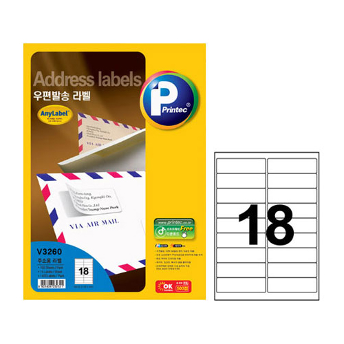 프린텍 애니라벨 우편발송라벨 100매[V3260] 18칸
