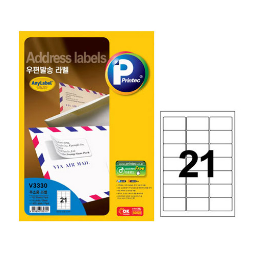 프린텍 애니라벨 우편발송라벨 100매[V3330] 21칸