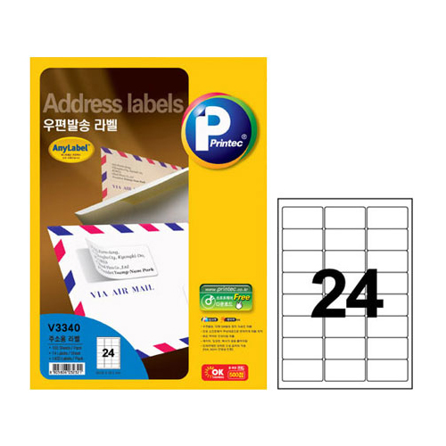 프린텍 애니라벨 우편발송라벨 100매[V3340] 24칸