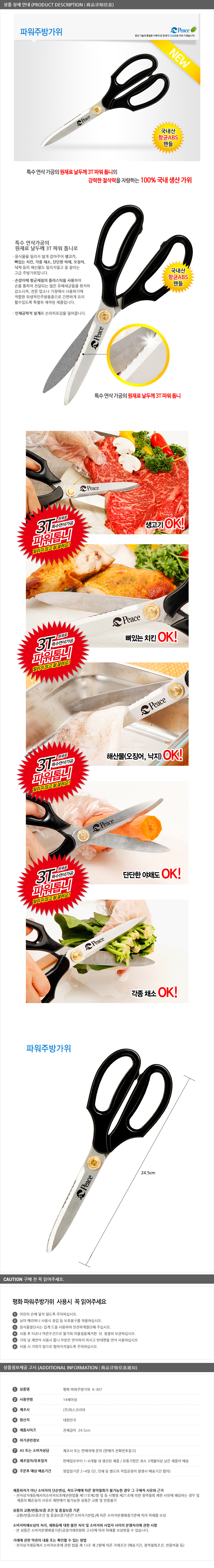 평화 파워 주방가위 K-307