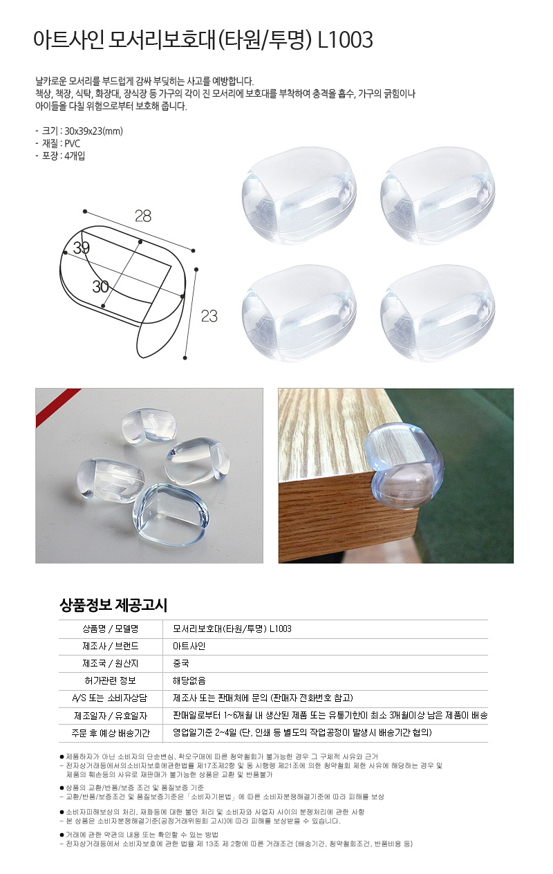 아트사인 모서리보호대(타원/투명) L1003