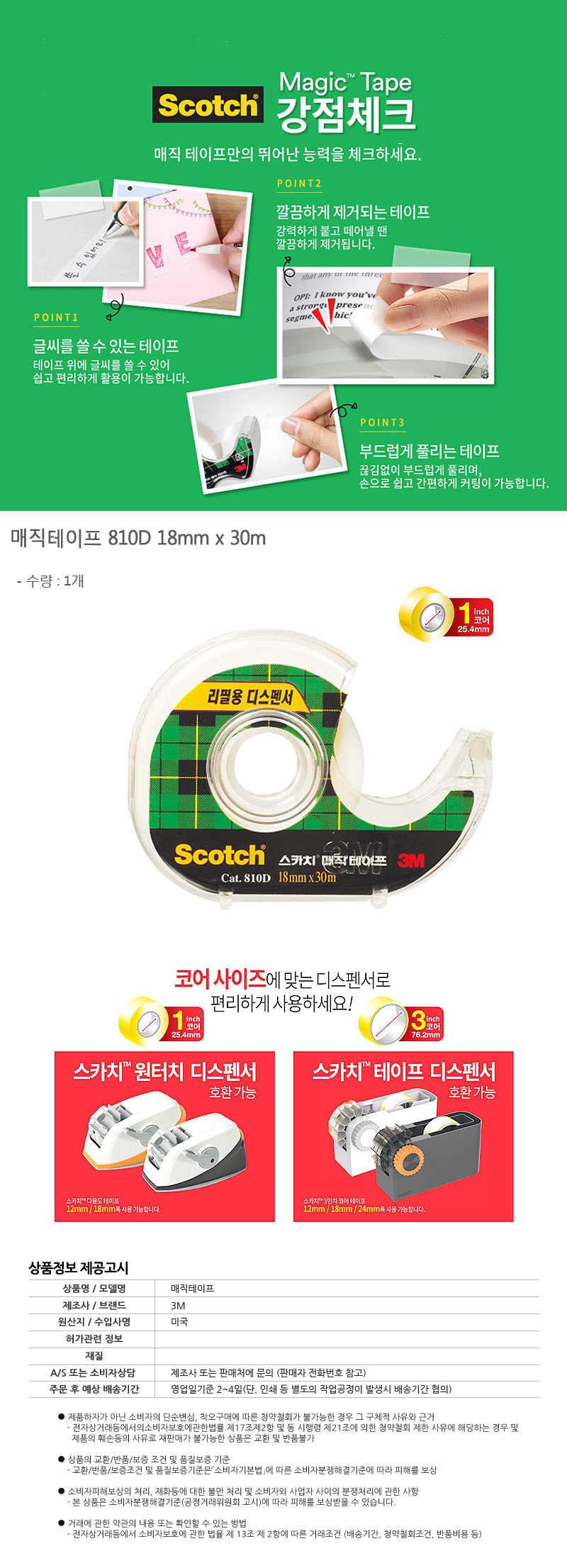 3M 스카치 매직테이프 18mmx30m Cat.810D